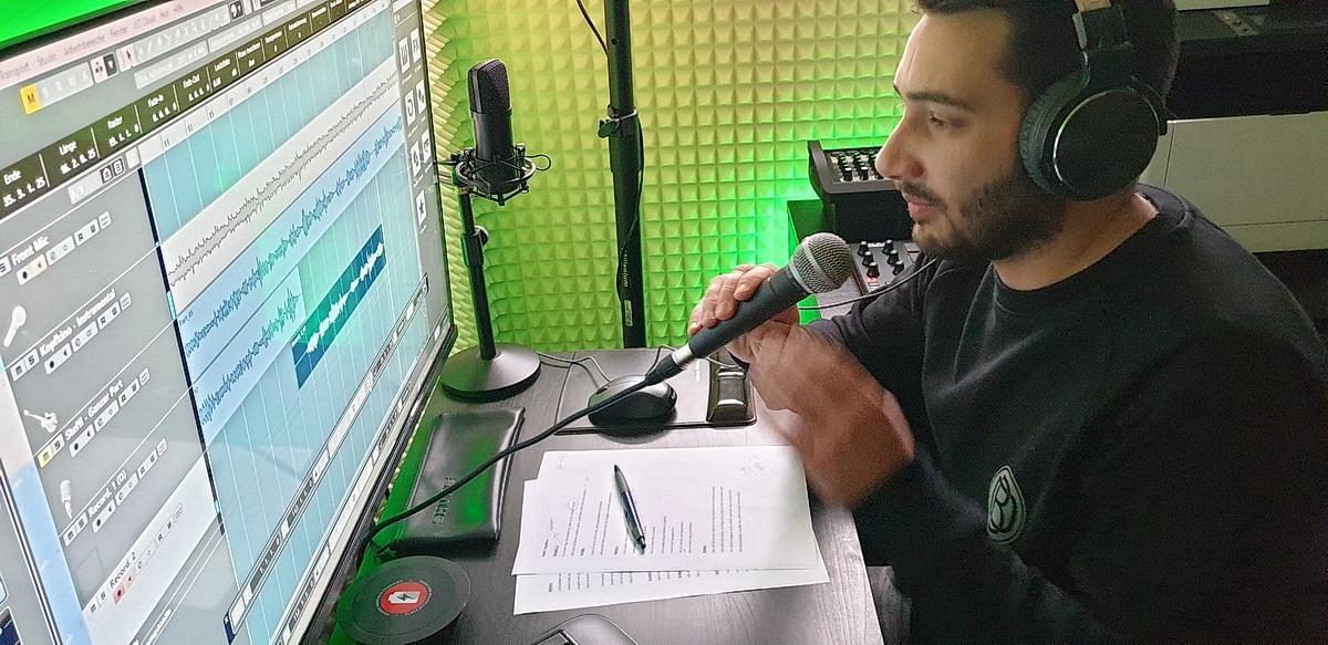 gemütliches, aber vor allem professionelles Studio, direkt in meiner Nachbarschaft. Steffi bekam die ersten Instruktionen um ihre Stimme aufzuwärmen! Dabei zeigte sich auch wie cool und locker Dennis drauf ist, cool und locker und trotzdem in jeder Sekunde 1000%ig professionell. Das ist genau meine Art von Zusammenarbeit wie ich sie liebe! Nach und nach sang Steffi die ersten Takes ein, hier und da mal eine Anweisung, damit Kopfkino auch richtig cool wird, mit jeder Menge Tiefgang. Die Instruktionen bekam Steffi über Kopfhörer in die Aufnahmekabine übermittelt. Ich nutzte die kleinen Momente immer wieder um mich auch mit Dennis Buss Gronau auszutauschen! Drehte mit meinem Handy Sequenzen um meine Community auf Instagram und Facebook Eindrücke erhaschen zu lassen. Menschen hautnah mitnehmen und teilhaben lassen!